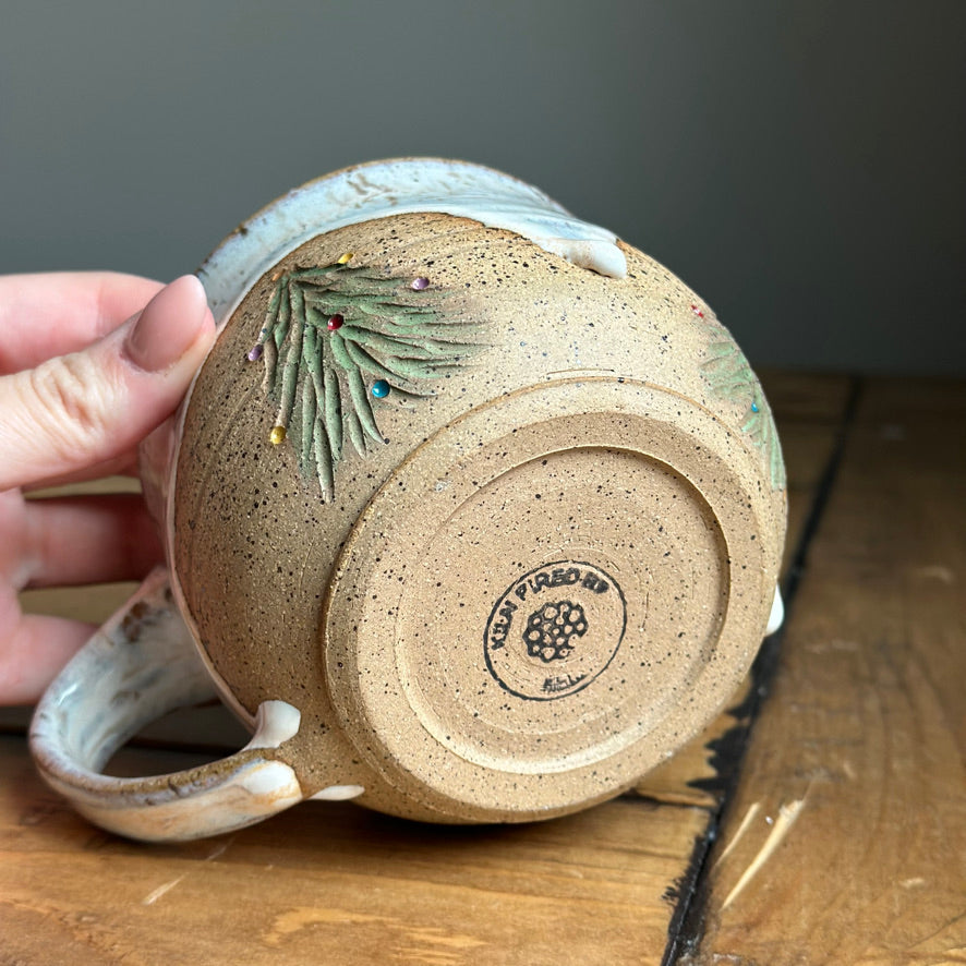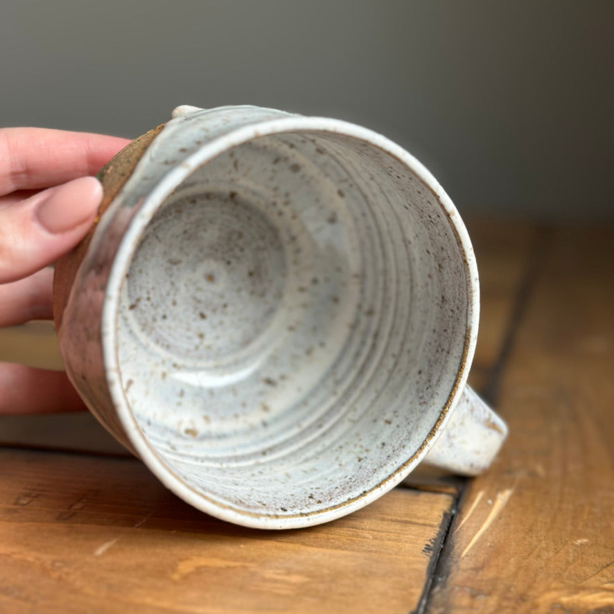 This mug was hand-thrown, carved & glazed in my home studio. The top rim is glazed for a smooth finish, and the bottom half is exposed raw clay for a nice grip texture. It is perfect for sipping morning coffee or afternoon tea. Everything tastes better in a handmade cup! My glazes are lead-free and fired to a temperature of 2232 degrees Fahrenheit. This piece is food safe, microwave safe & dishwasher safe, although I do recommend hand-washing my pieces to ensure the longevity of the dish wares.